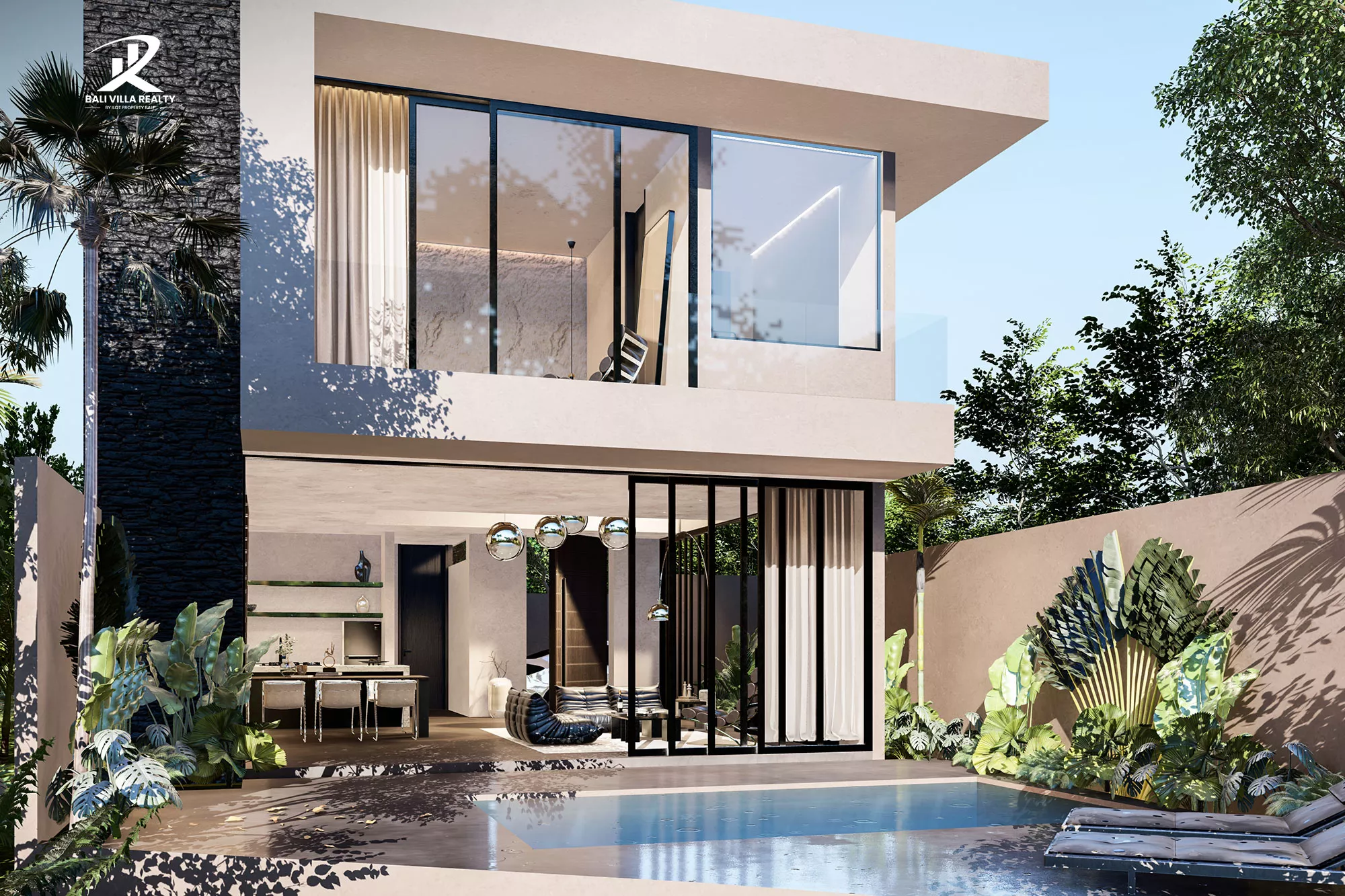 Villa modern dua lantai dengan desain tropis minimalis. Dilengkapi dengan kolam renang pribadi, ruang tamu terbuka, dan dapur lengkap. Berlokasi di area tenang namun dekat dengan pantai dan kafe populer.